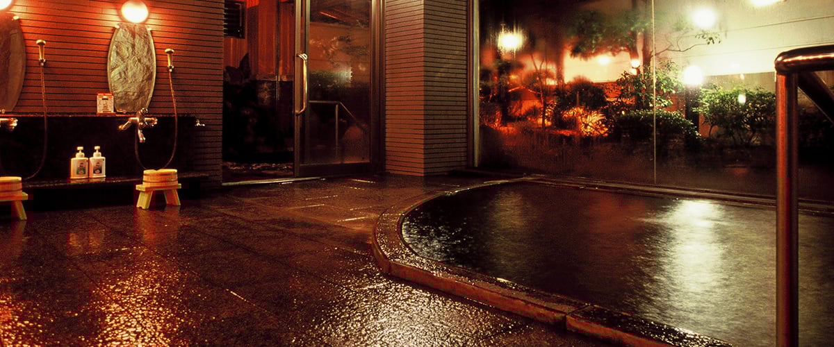 男性用は2F”黒御影石”、女性用は1F”赤御影石”造りで広々と温泉情緒を楽しんで頂けます。